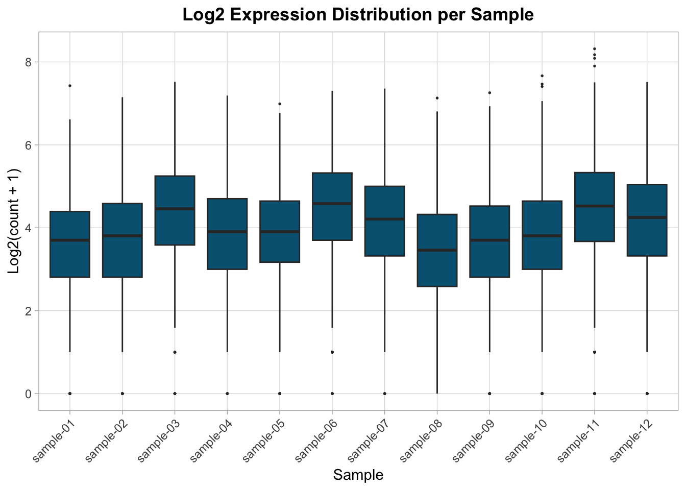 ggplot2::ggplot(log_df, ggplot2::aes(x = sample, y = log_expression)) +